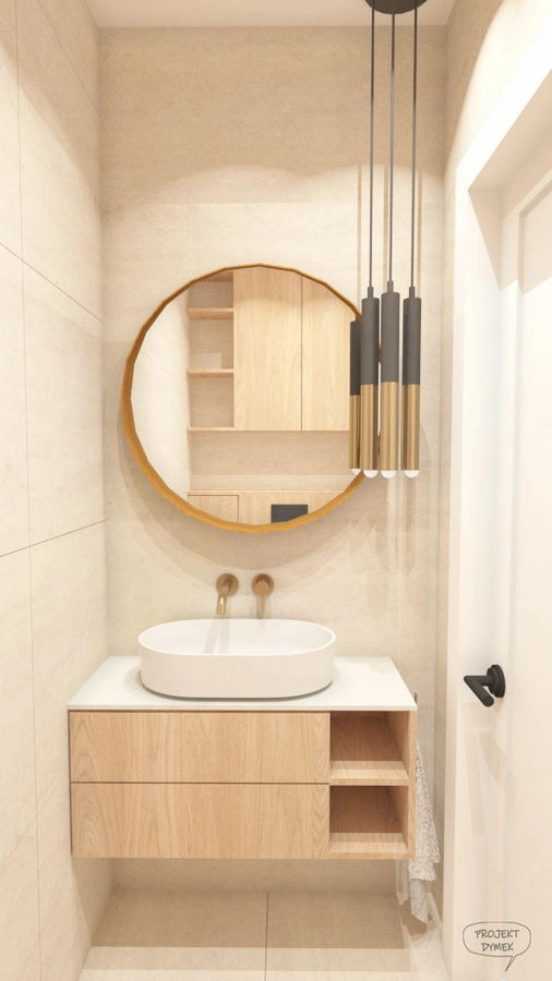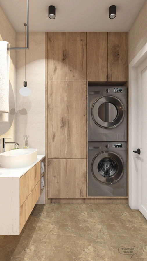 Całość uzupełniają proste formy, subtelne detale i delikatne kontrasty, które nadają wnętrzu spokojny, nowoczesny charakter.