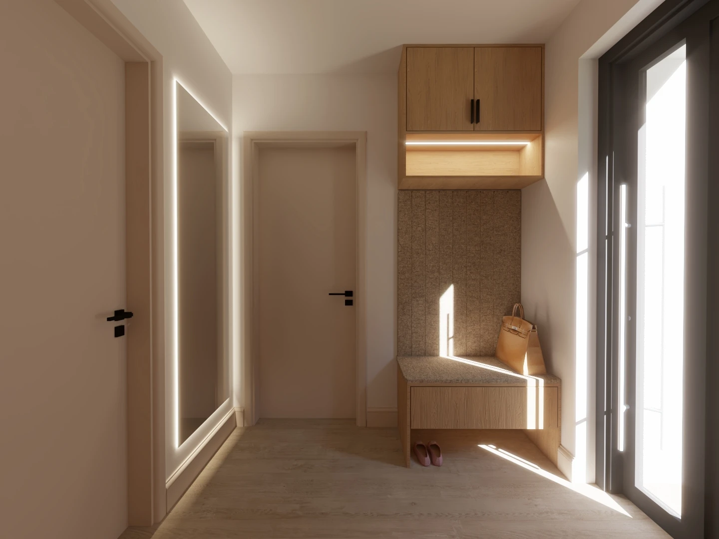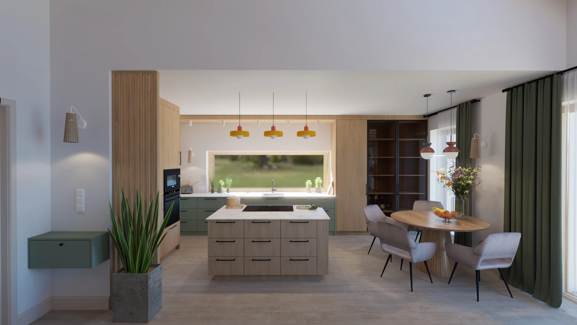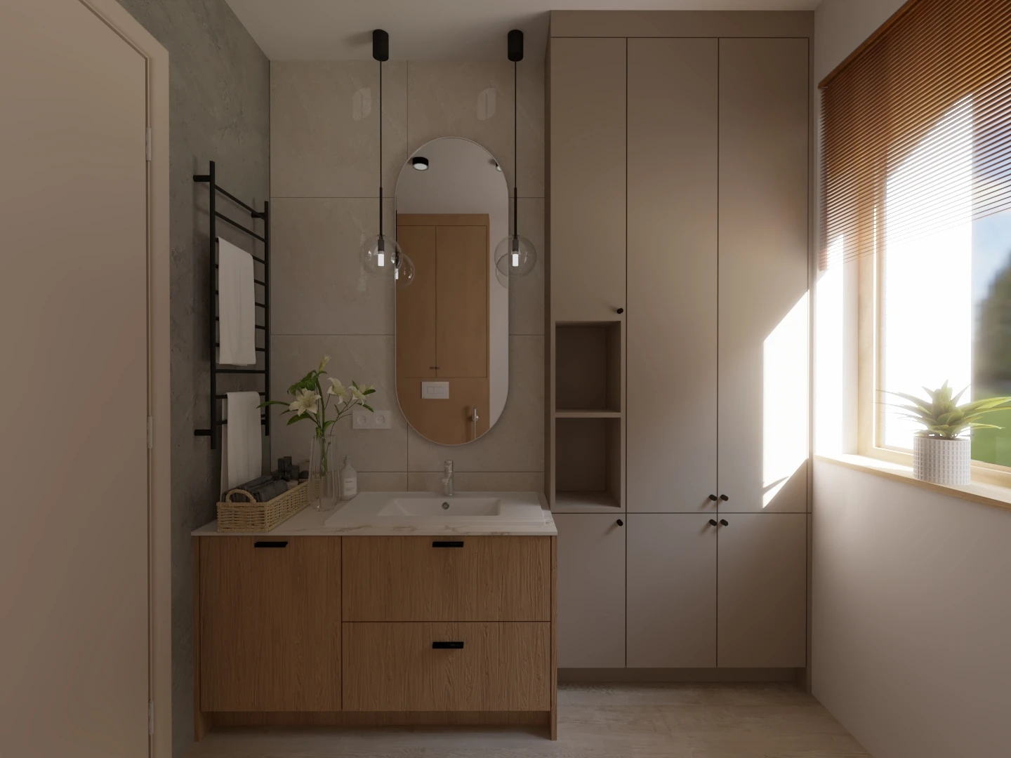 Naturalne materiały, ciepła paleta barw, ergonomiczne rozwiązania i czytelny układ pomieszczeń tworzą dom, w którym po prostu dobrze się mieszka. To wnętrze zaprojektowane z myślą o spokojnej codzienności – takiej, jakiej pragnęli inwestorzy.